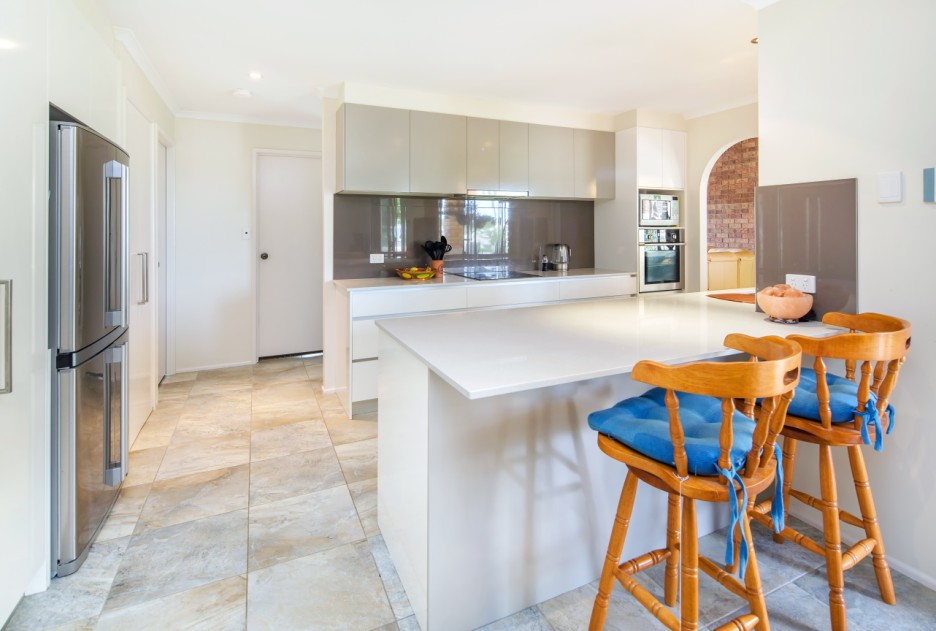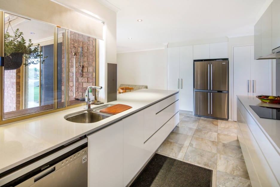 * New kitchen with stone bench tops and abundant storage/draws and cupboard space