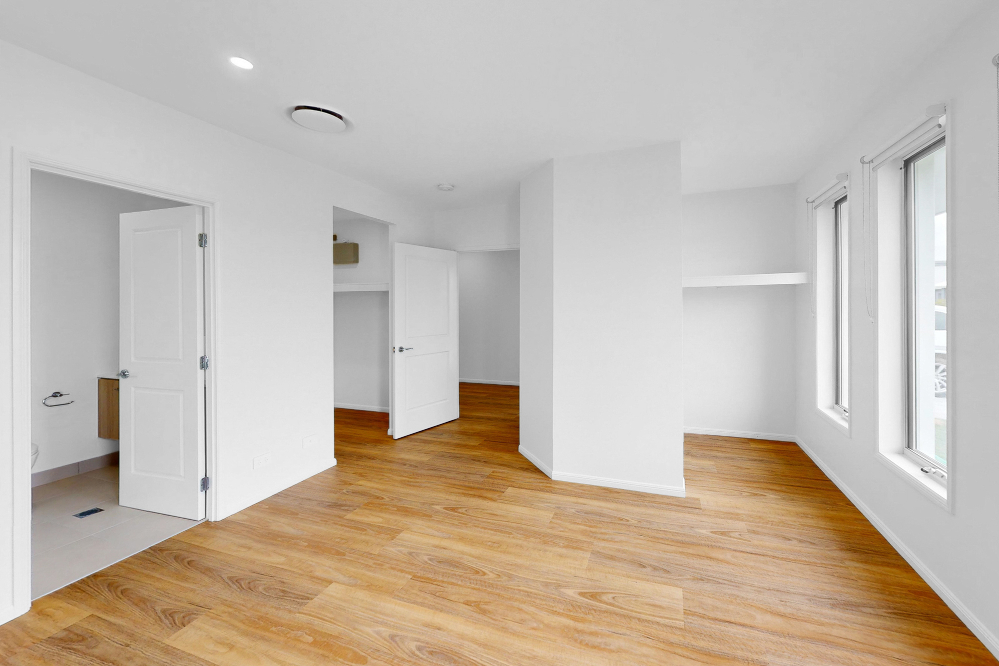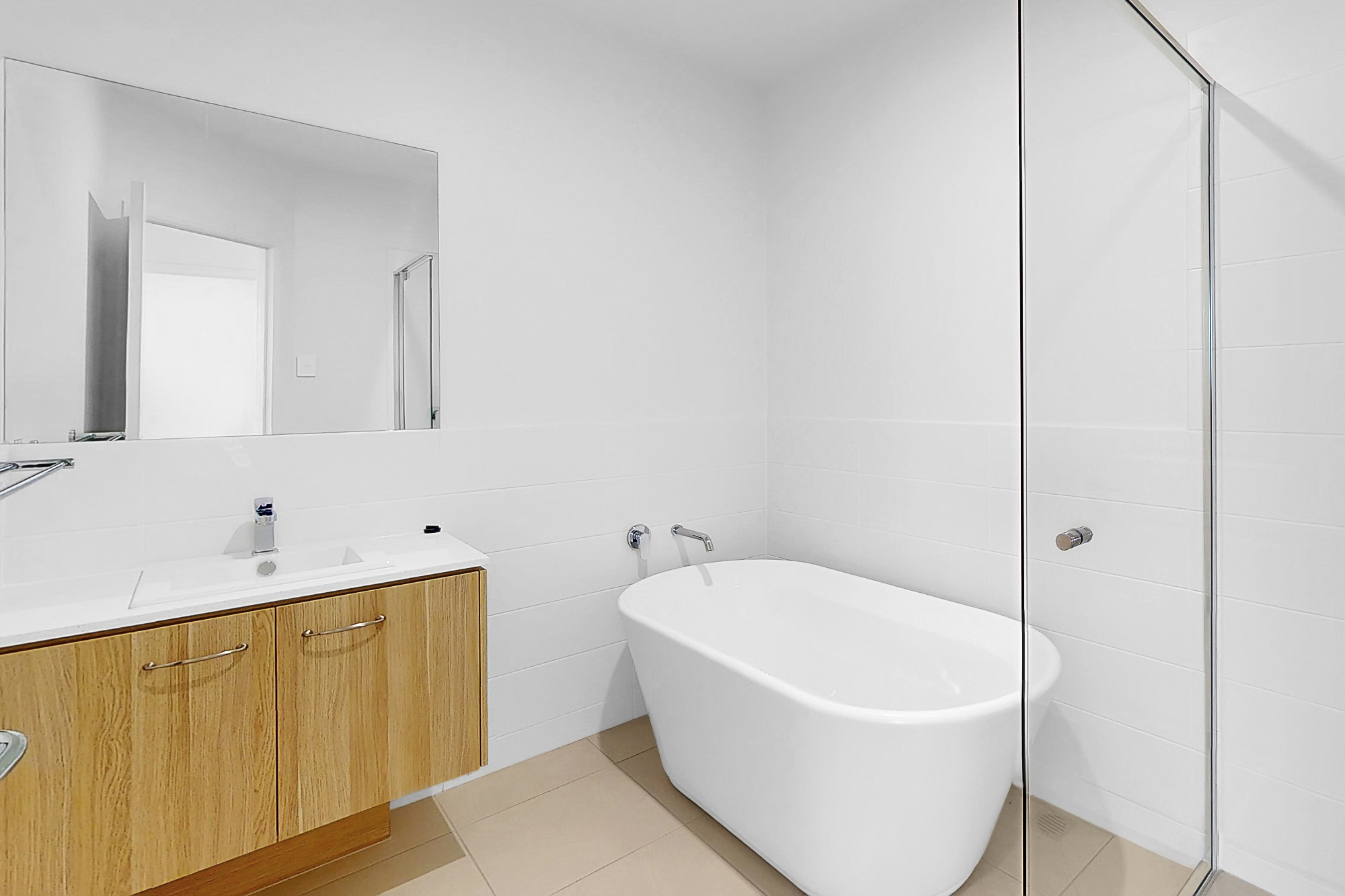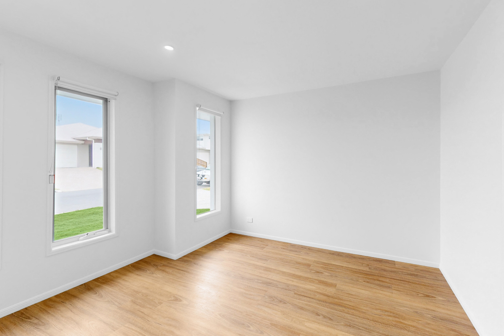 The master bedroom, is a retreat with roller blinds on all windows, a luxurious ensuite with double vanity, shower, toilet, and an expansive double walk-in robe on either side of the master suite.