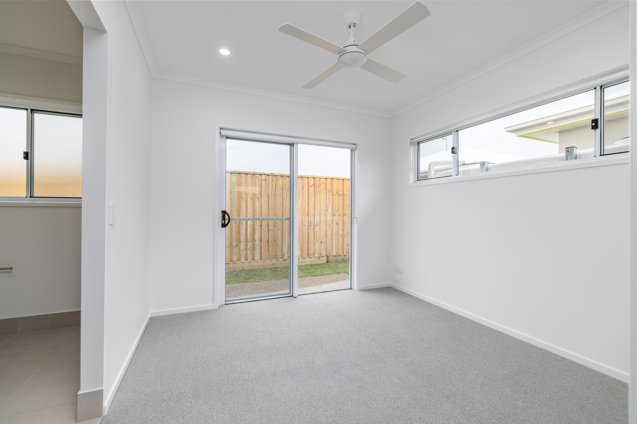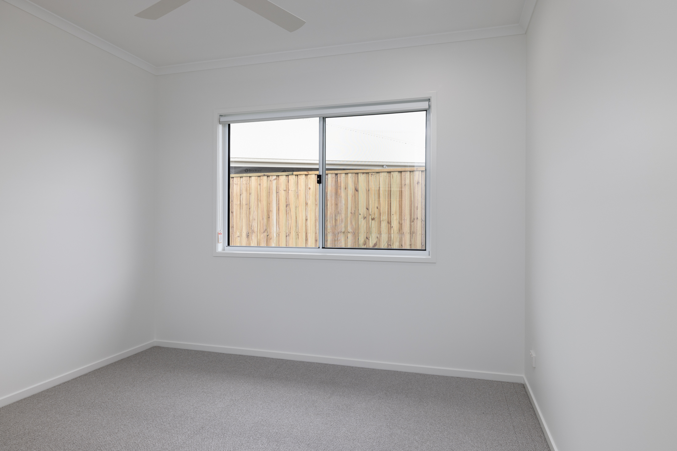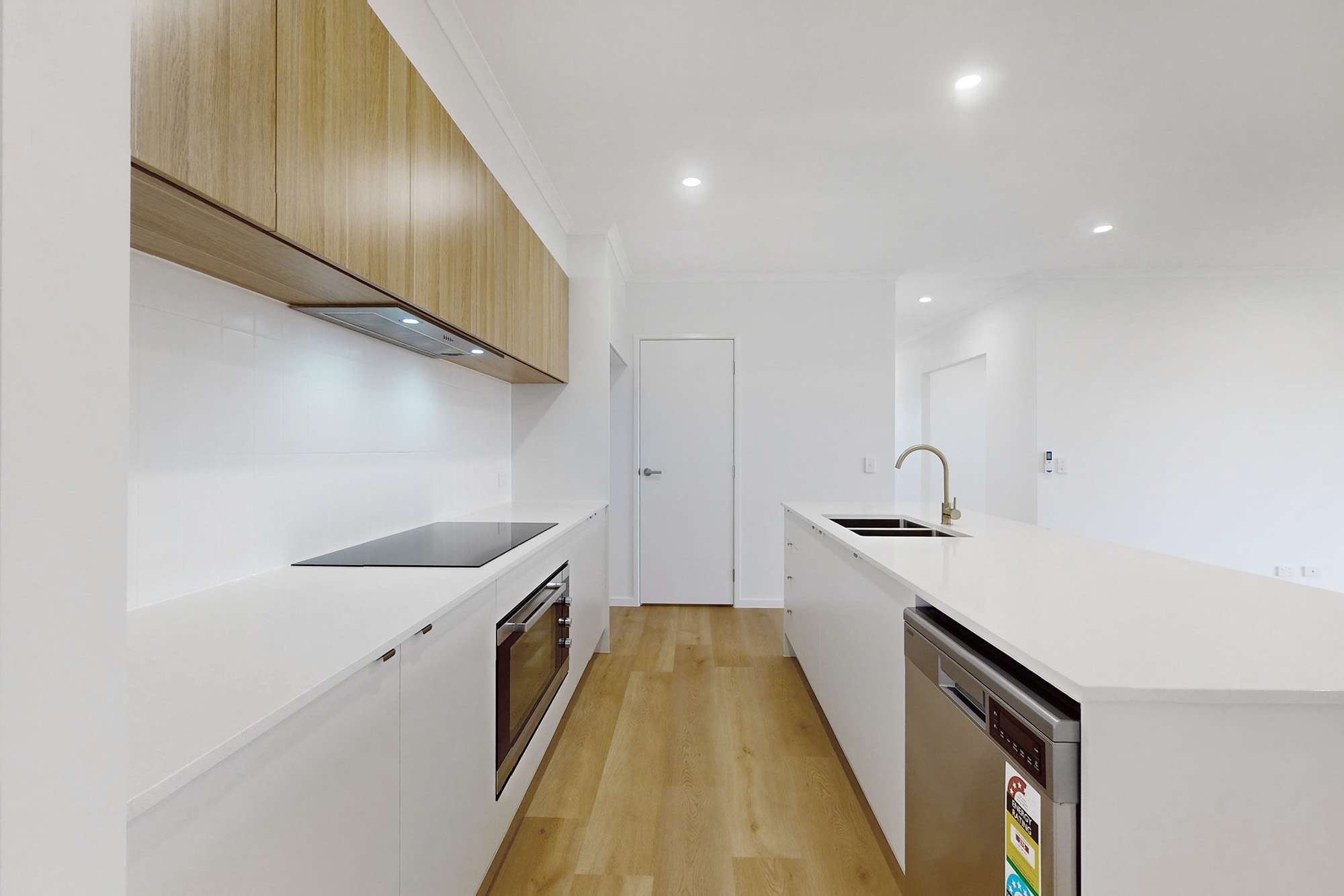 The open-plan layout creates a light-filled atmosphere, with a beautifully appointed kitchen featuring brushed gold finishes, high-end appliances, and plenty of storage. The living and dining areas seamlessly flow into the large backyard, offering plenty of space for outdoor entertaining or relaxation. The property also features a convenient double gate in the backyard, providing easy access for vehicles or additional outdoor storage.