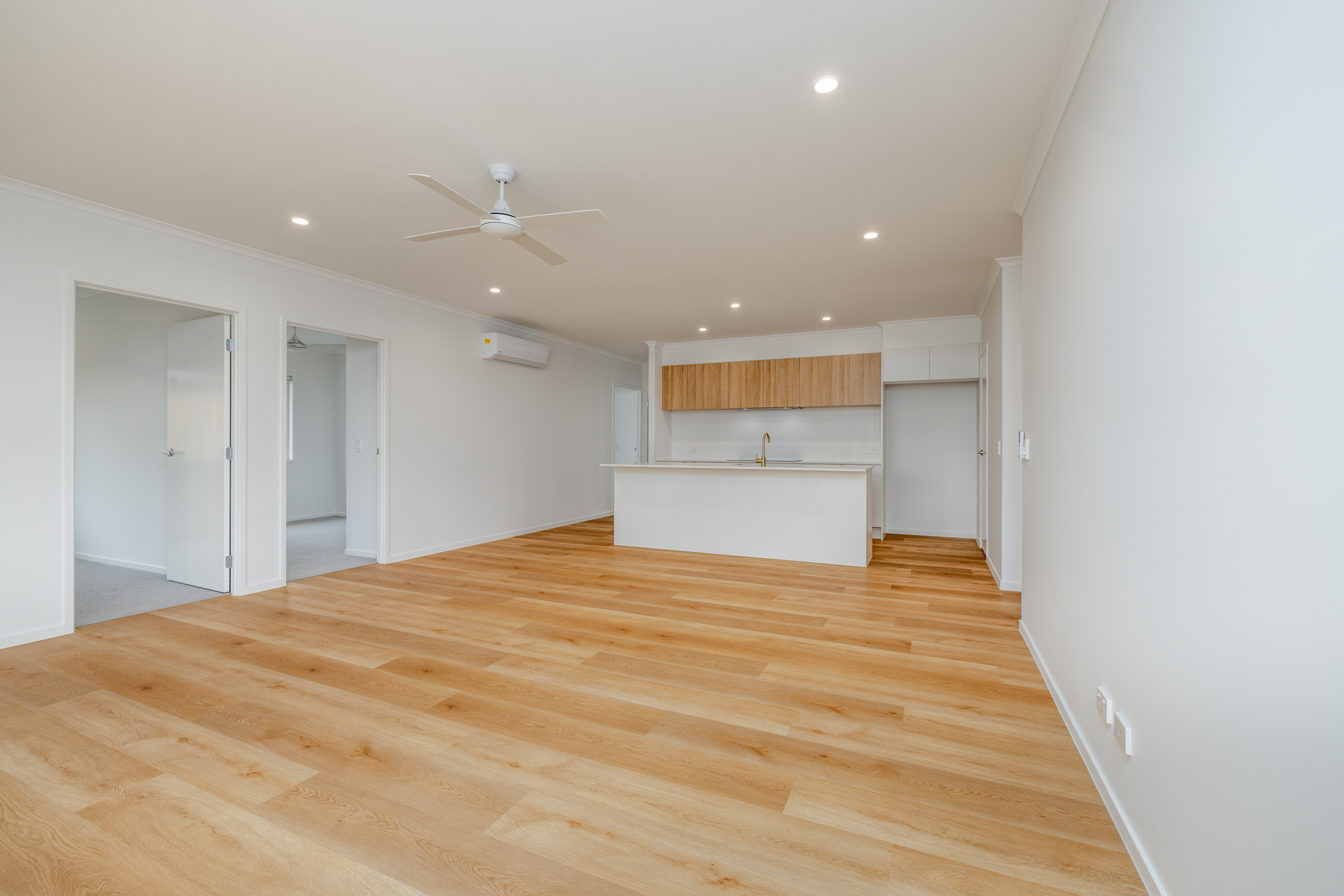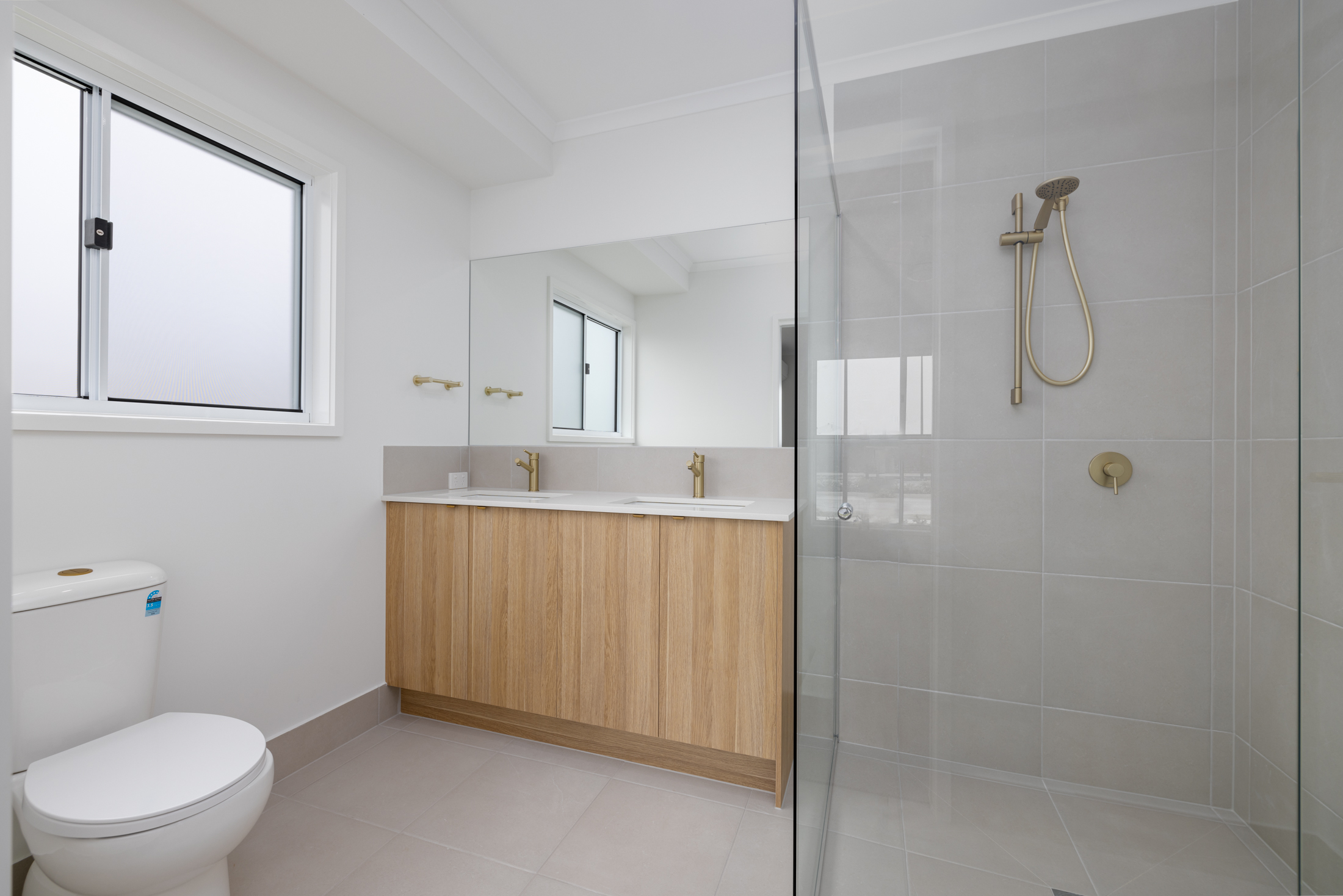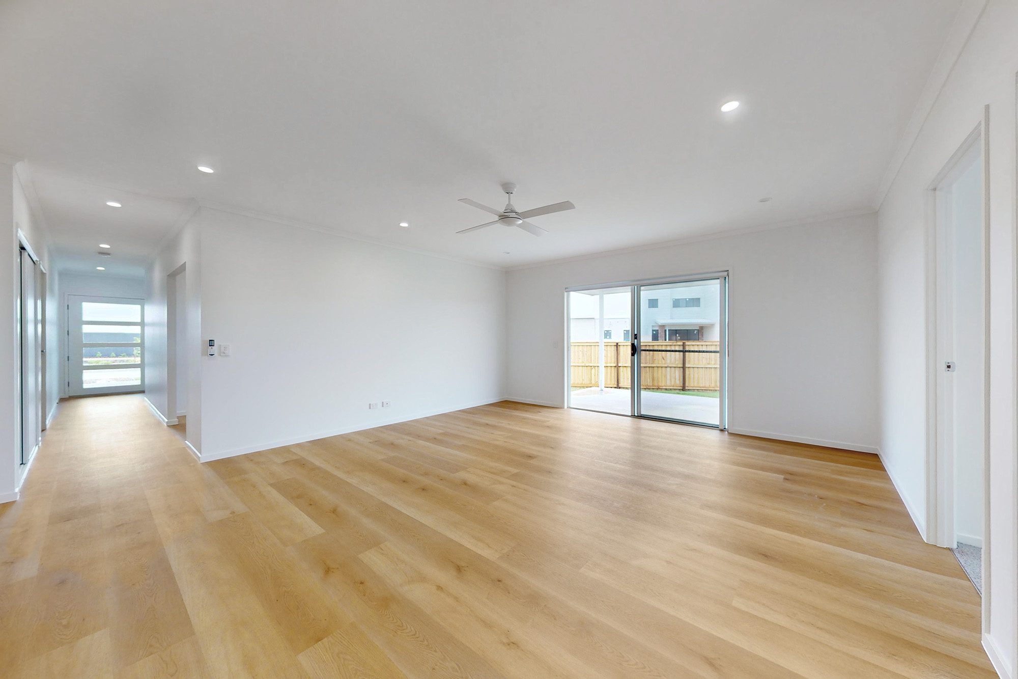 The open-plan layout creates a light-filled atmosphere, with a beautifully appointed kitchen featuring brushed gold finishes, high-end appliances, and plenty of storage. The living and dining areas seamlessly flow into the large backyard, offering plenty of space for outdoor entertaining or relaxation. The property also features a convenient double gate in the backyard, providing easy access for vehicles or additional outdoor storage.