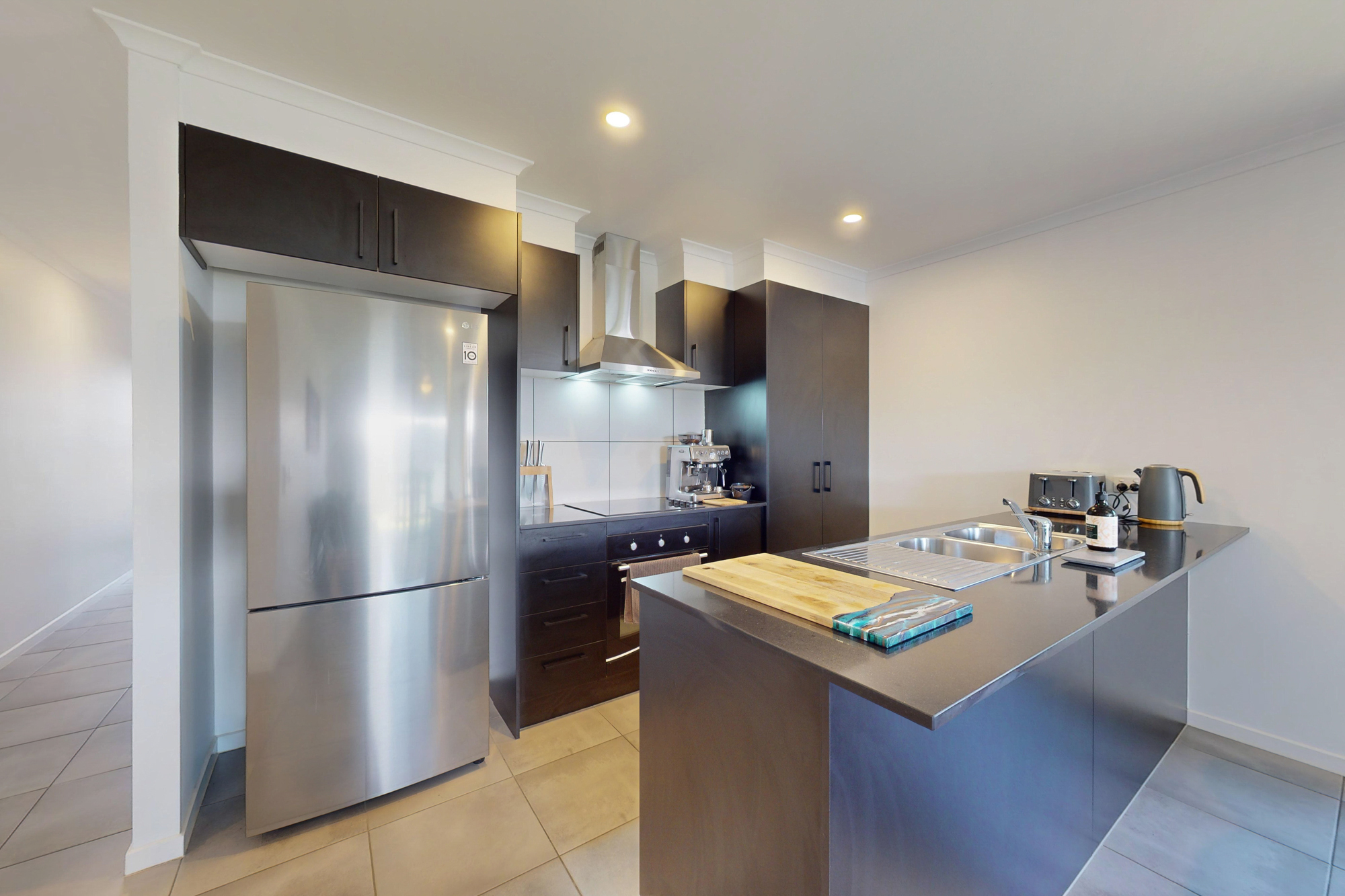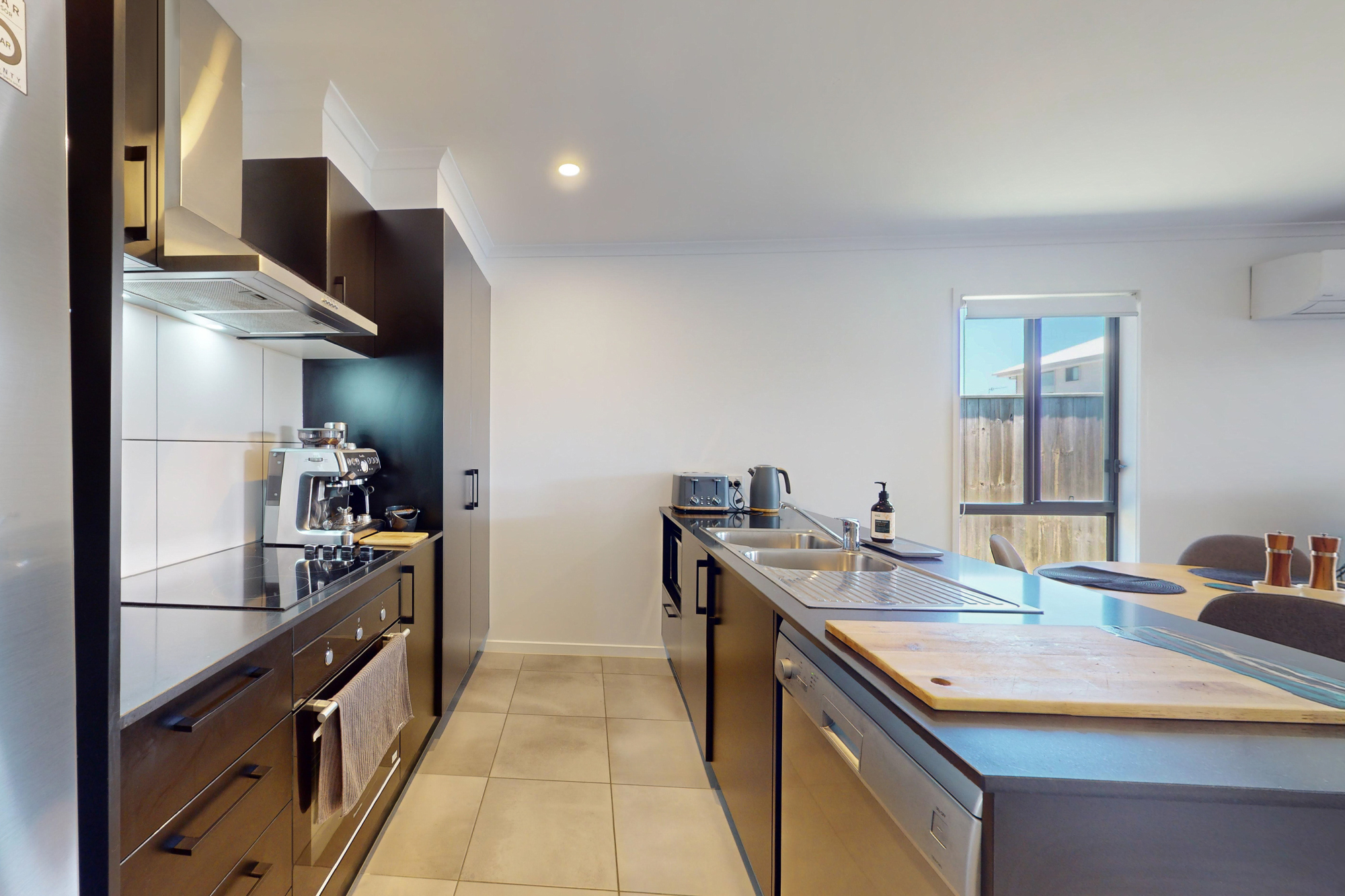 The air-conditioned living area flows seamlessly into the open-plan kitchen, equipped with sleek finishes, ample storage, and high-quality appliances, perfect for entertaining or everyday cooking. Ceiling fans throughout the home enhance comfort, while the alfresco dining area, complete with a ceiling fan, provides a tranquil space to enjoy outdoor meals or relax.