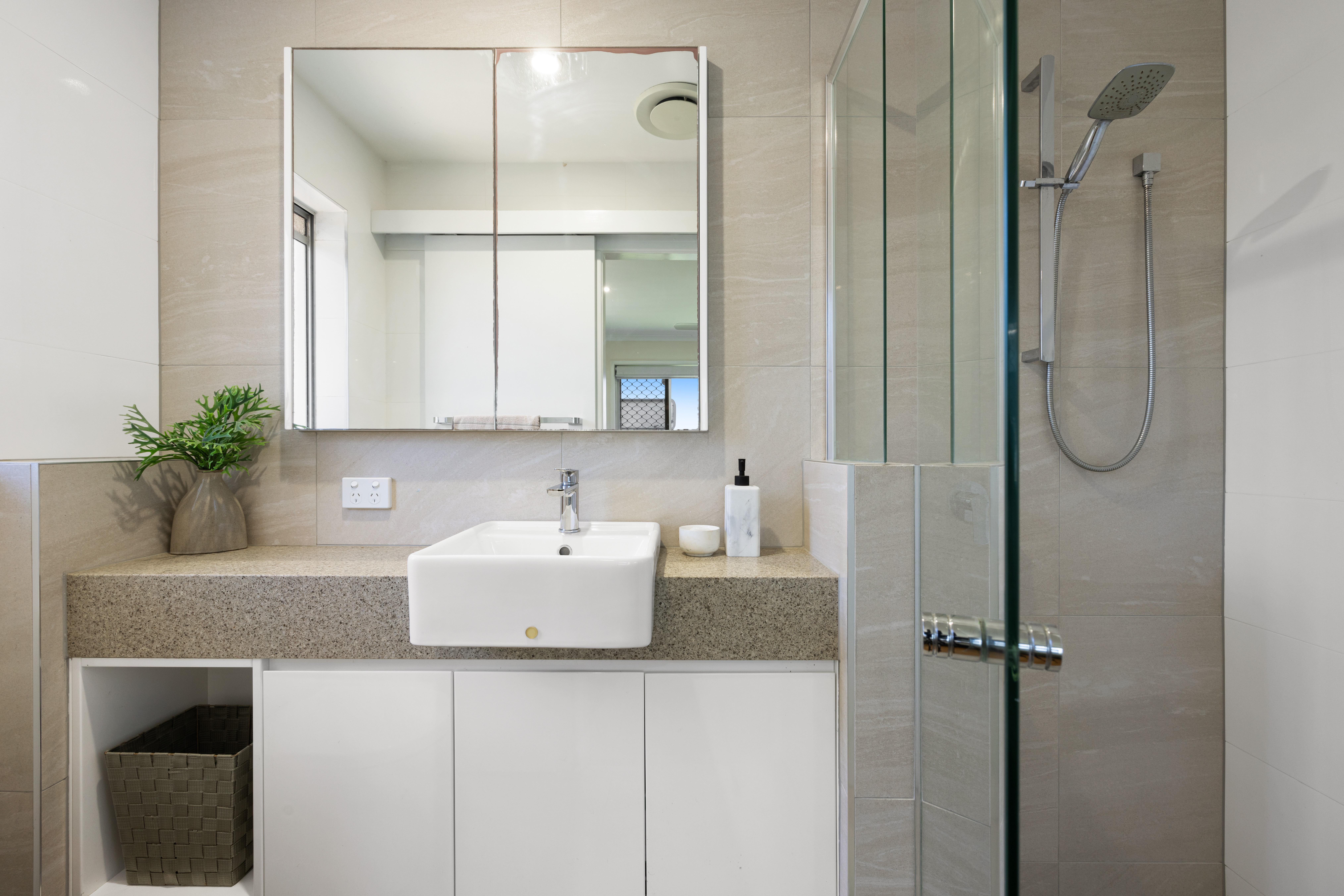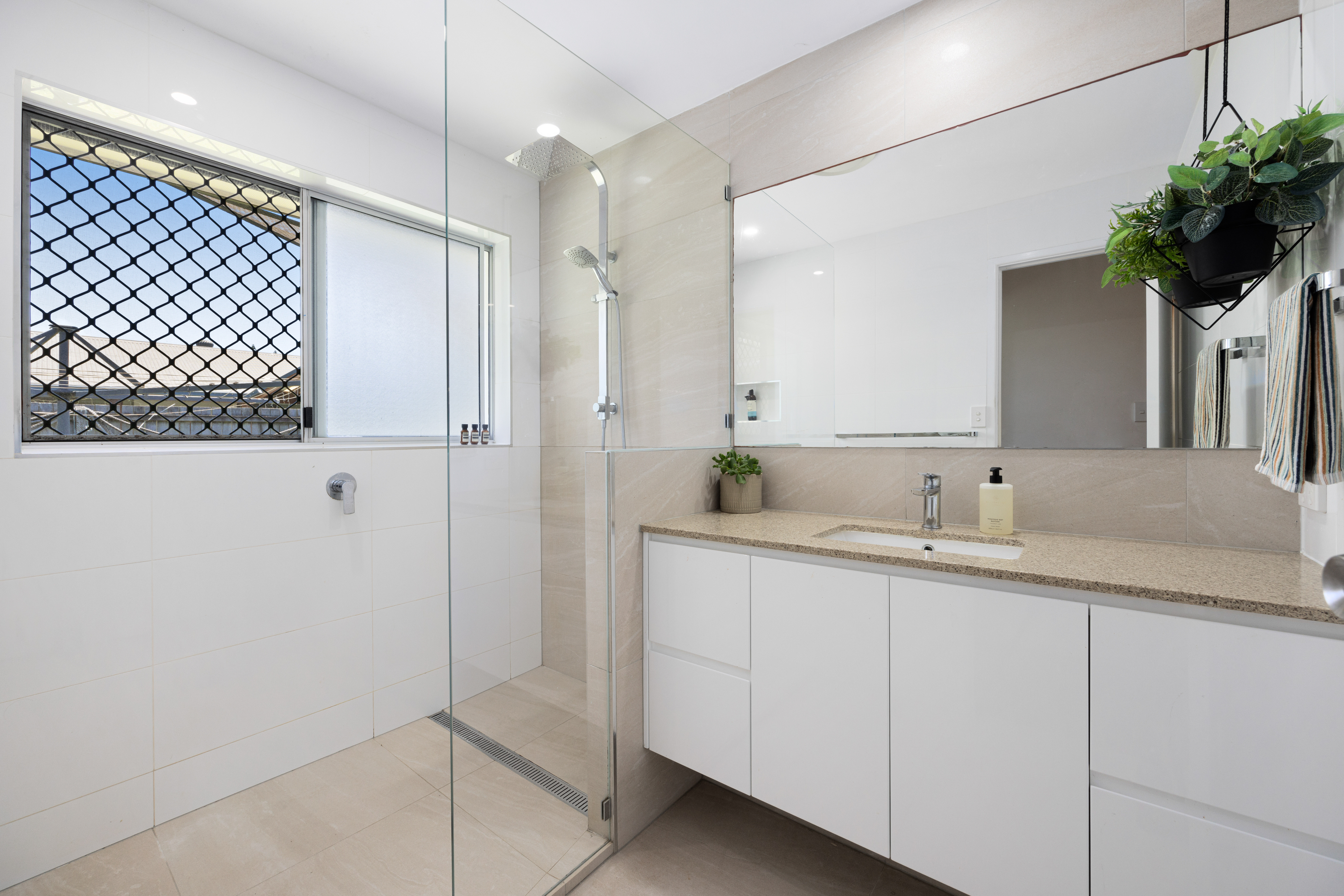 The home features three comfortable bedrooms, each with built-in wardrobes providing ample storage space. The master suite includes its own en-suite bathroom, offering privacy and comfort. The two additional bedrooms share a beautifully renovated second bathroom, designed with both style and practicality in mind. With modern fixtures and finishes, both bathrooms enhance the home’s overall appeal and functionality.