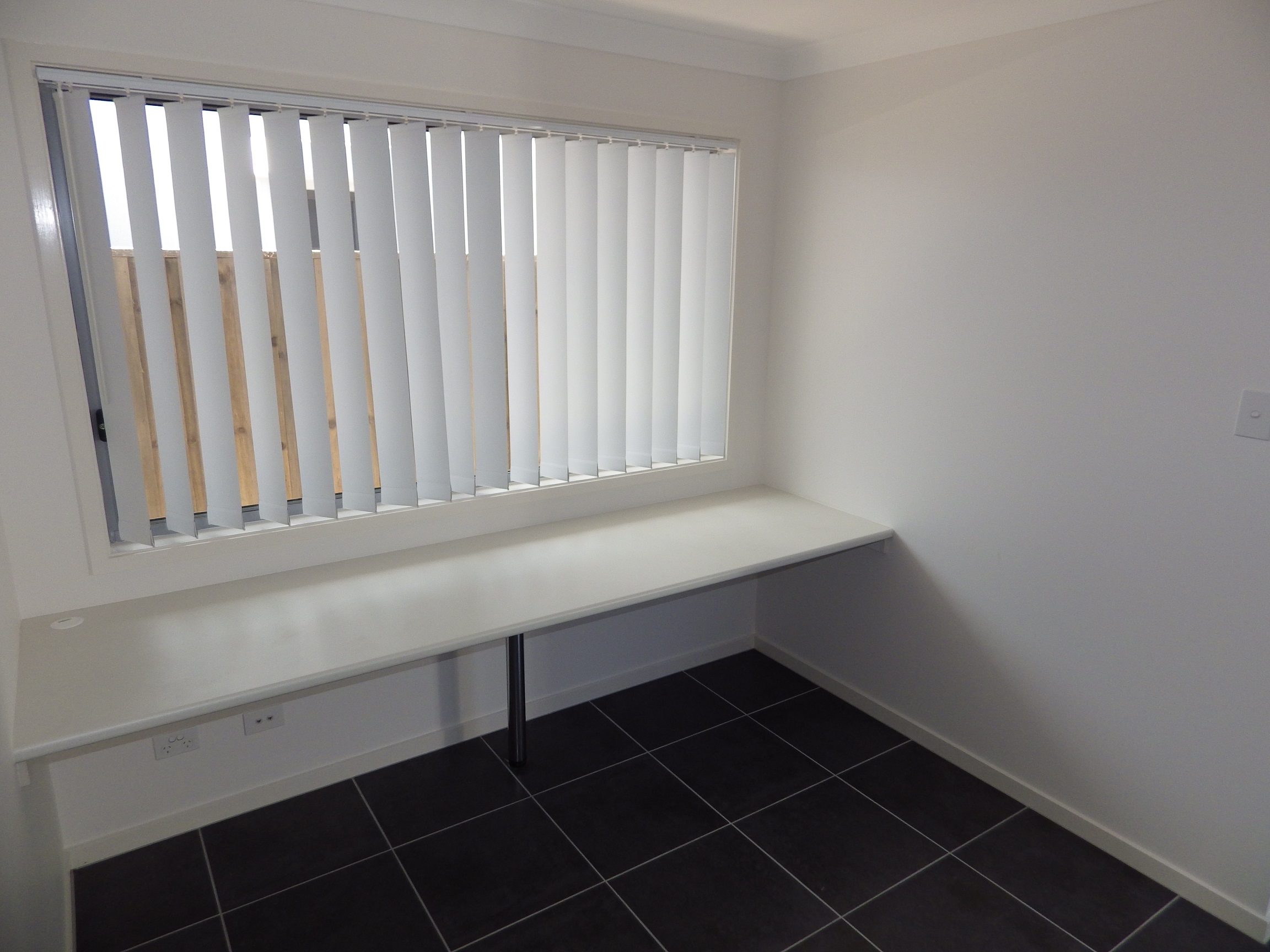 The master bedroom is privately positioned and features a walk-in robe, ensuite, and split-system air conditioning. The two additional bedrooms are thoughtfully placed at the other end of the home—one complete with a built-in study desk, while the other sits adjacent to a handy two-person study nook, making it perfect for those working or studying from home.