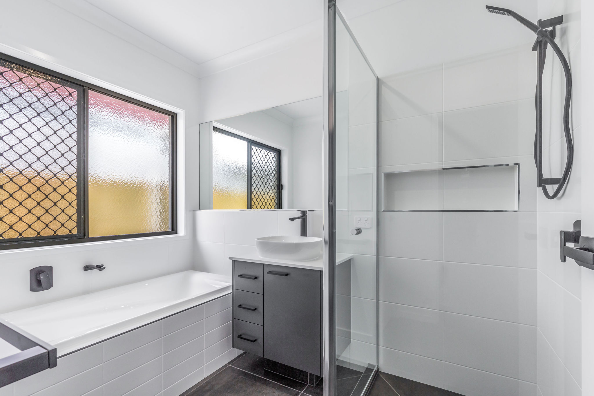 * Black fixtures and fittings