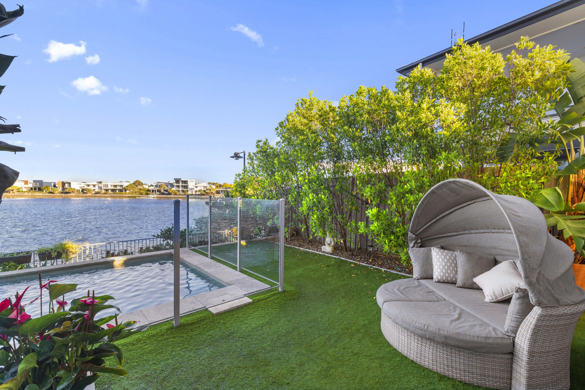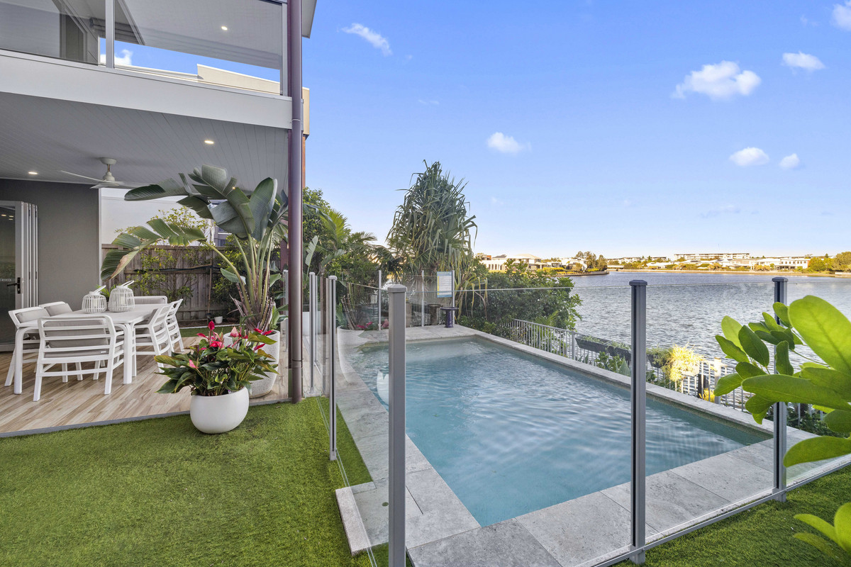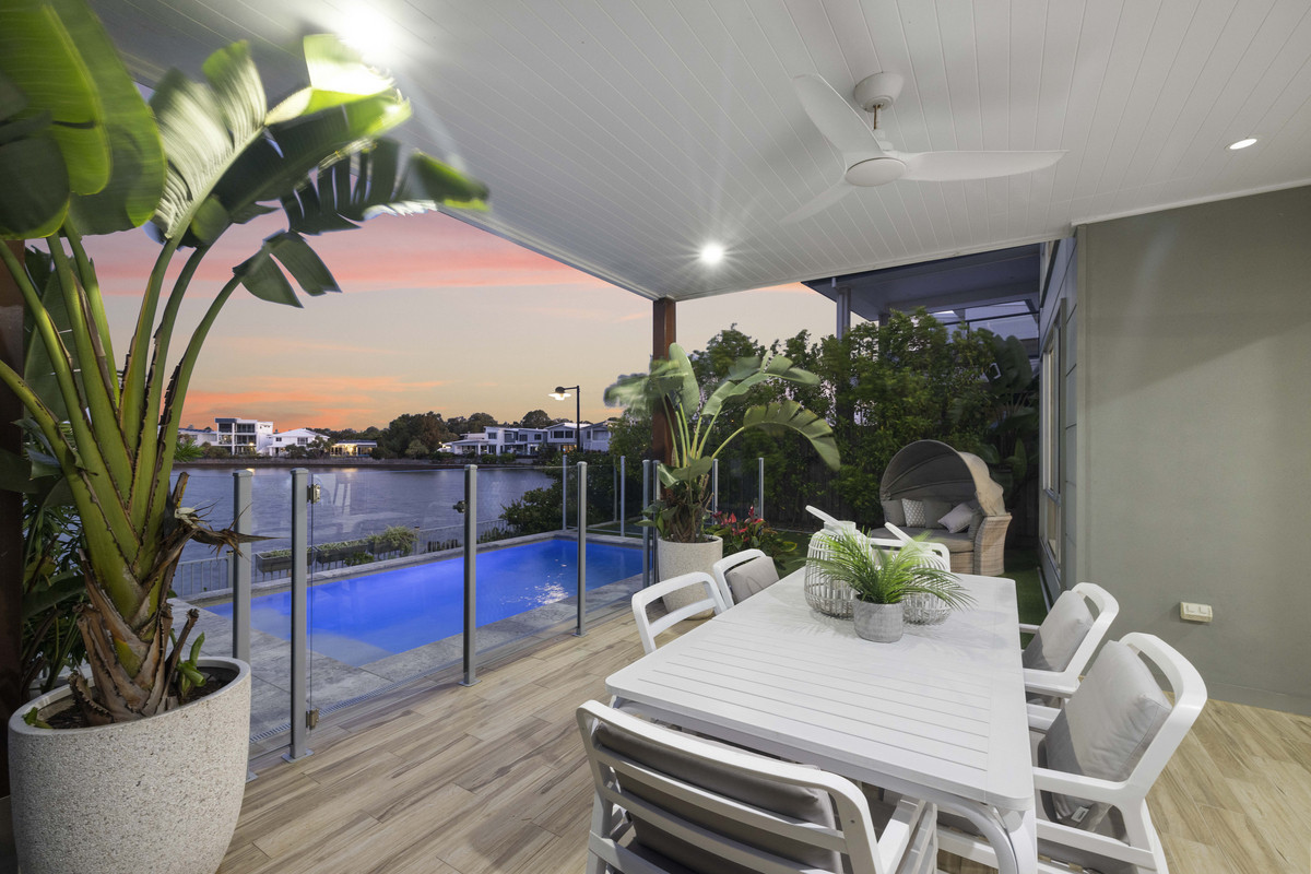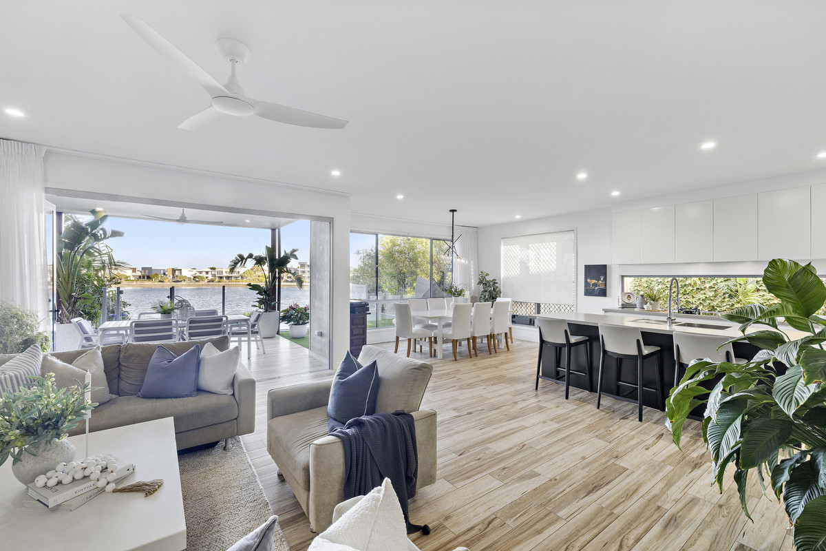 This ultra-stylish, impeccably presented 2017-built designer home tucked away in a prestigious lakefront cul-de-sac surrounded by impressive waterfront properties offers a relaxed coastal lifestyle of the highest calibre close to major hospitals, stunning beaches, shopping centres, parks, and schools.