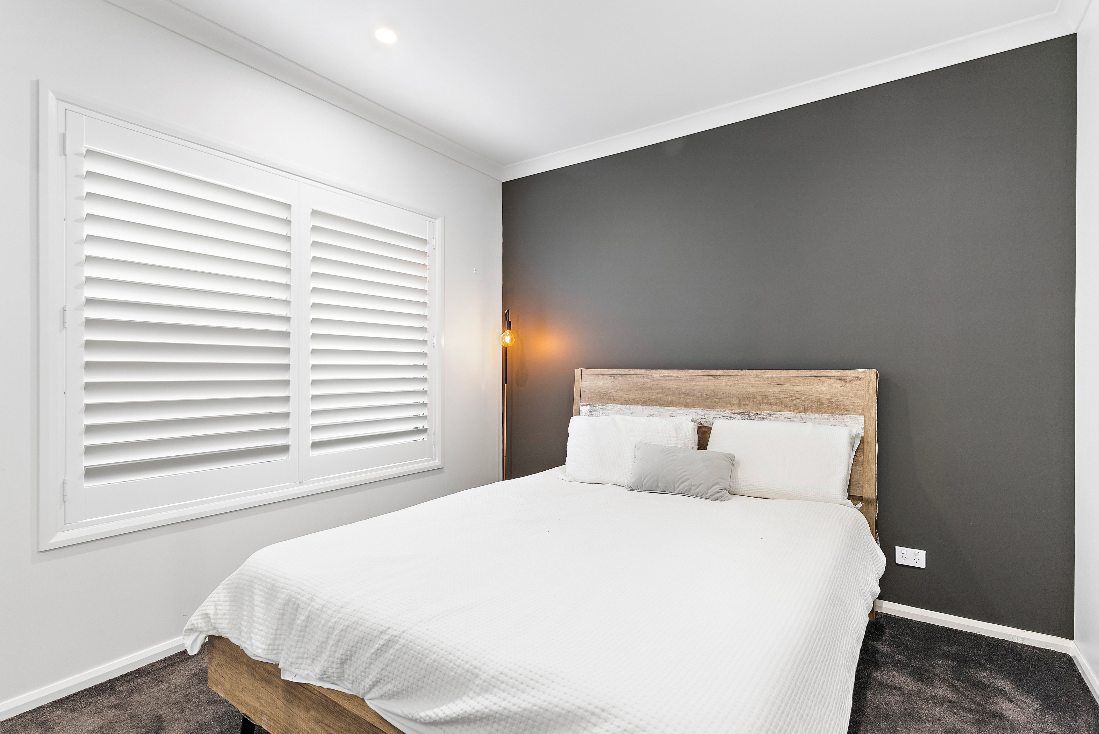 Further three bedrooms with feature walls, plantation shutters, and built-in robes