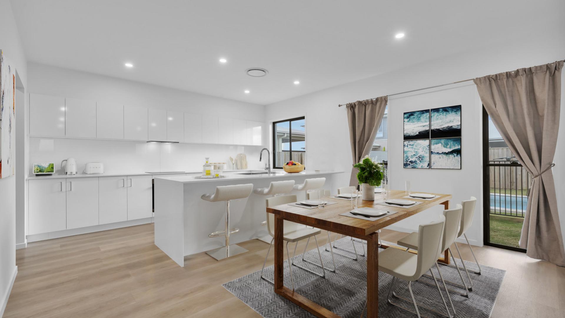 Step into this modern, family-sized double-storey home on a 350m² block in the vibrant Banya community. Featuring timber-look flooring and stone benchtops, the home combines style and practicality.