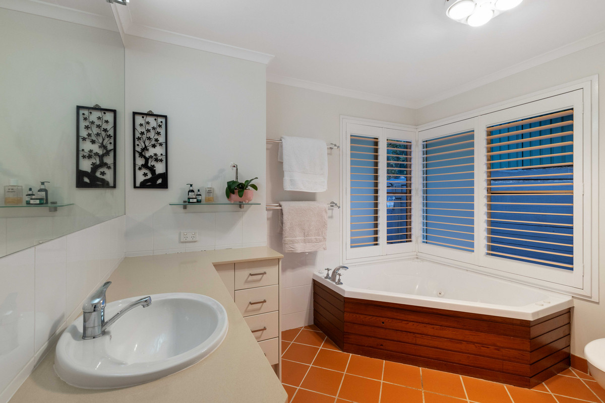 As truly lovely as the home is, the setting is absolutely resplendent with established native and tropical gardens, flowering shrubs, grassy areas for children and pets to play, and the acreage is fully walkable, so you can explore it all by foot, and there's even a seasonal creek on the back boundary.