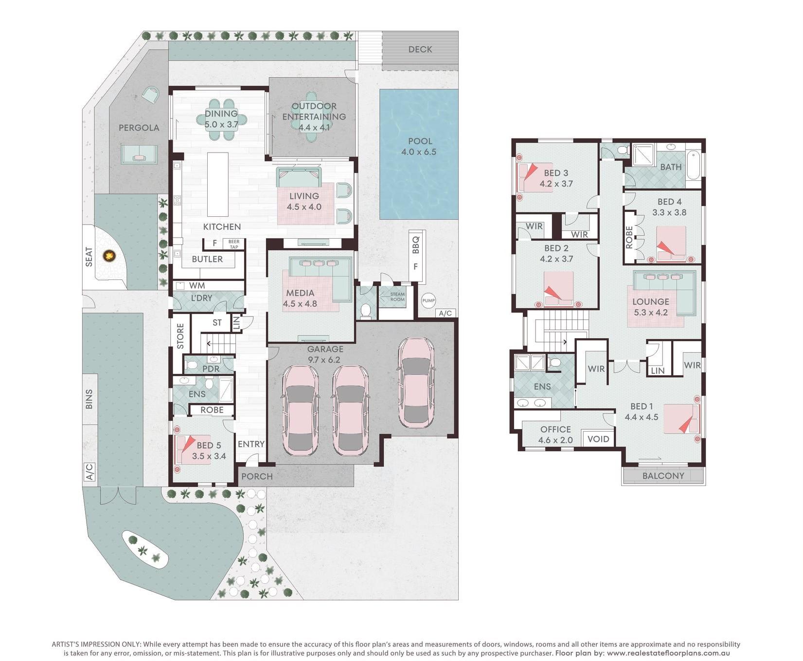 • Multiple living zones, media room, all-weather alfresco & heated pool