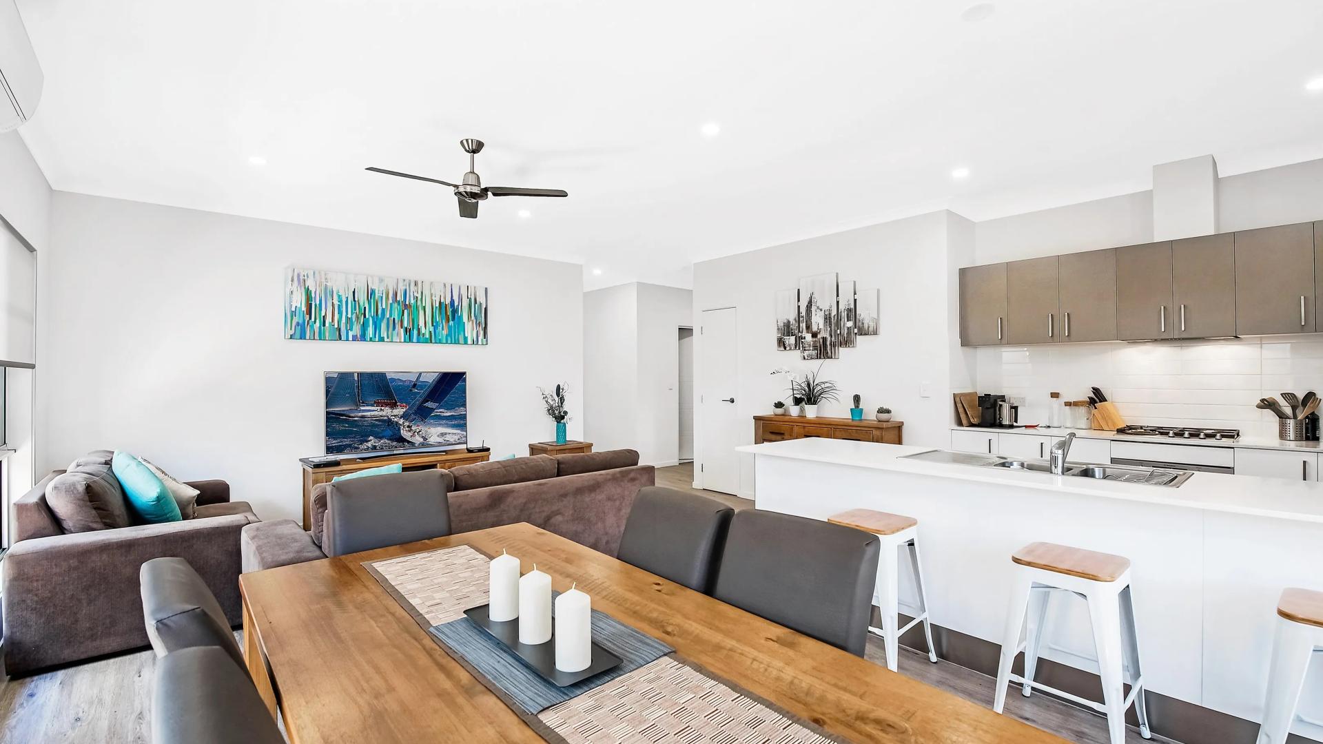 Comfort is at the forefront of the design, with individual air-conditioning systems in each bedroom, allowing everyone to set their perfect climate. Crimsafe screens provide peace of mind, while also allowing natural breezes to flow through the home. With TV connections in every bedroom, there’s room for both connection and personal downtime.