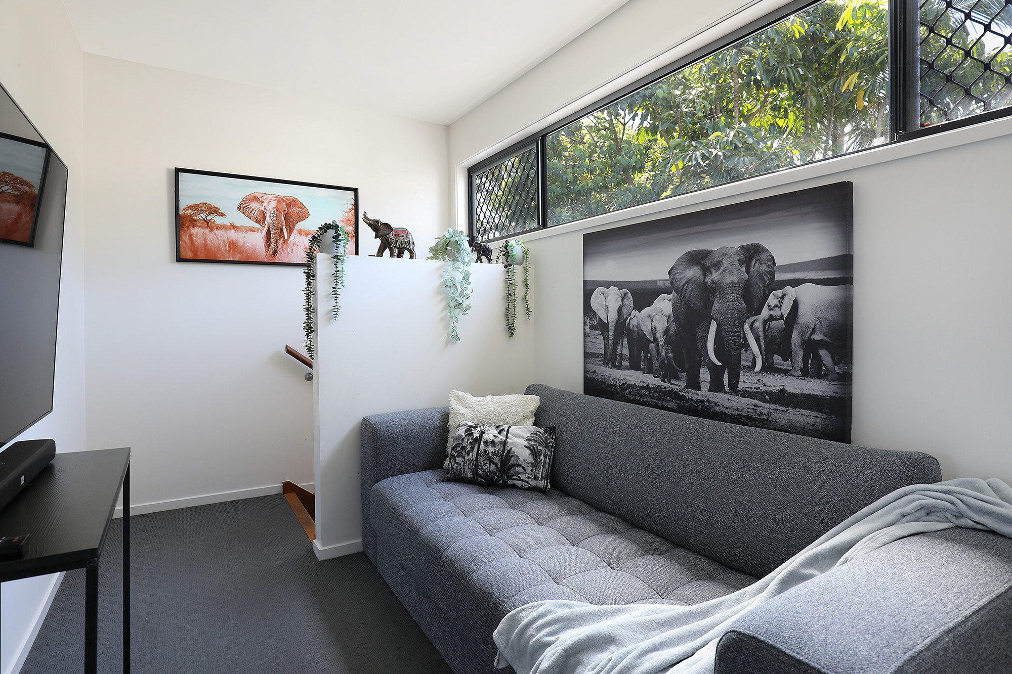 Upstairs, three generous bedrooms and a retreat space provide a peaceful escape from the hustle. The master suite includes a walk-in robe and ensuite, creating a private sanctuary, while the other bedrooms are fitted with built-ins and serviced by a sleek main bathroom.