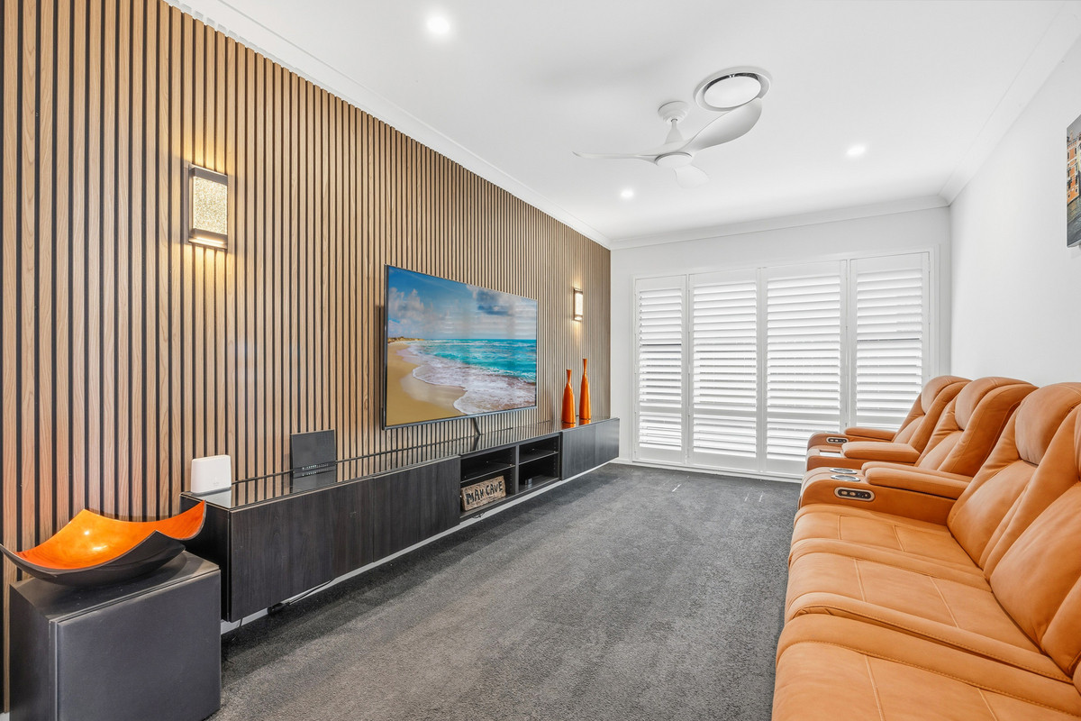 Ducted air-conditioning, remote controlled ceiling fans, plush carpets in media/bedrooms, acoustic panelling and floating entertainment units in both living areas, stone benches, integrated dishwasher, 900mm gas cooktop, soft close cabinetry, gas hot water, 3x3-metre movable deck with open/close aluminium pergola roof, garden shed, fully insulated cedar multi-purpose shed on concrete slab (suitable for music room), 5,000-litre rainwater tank, and 6.4kW solar power are just some of the home's extensive suite of features.