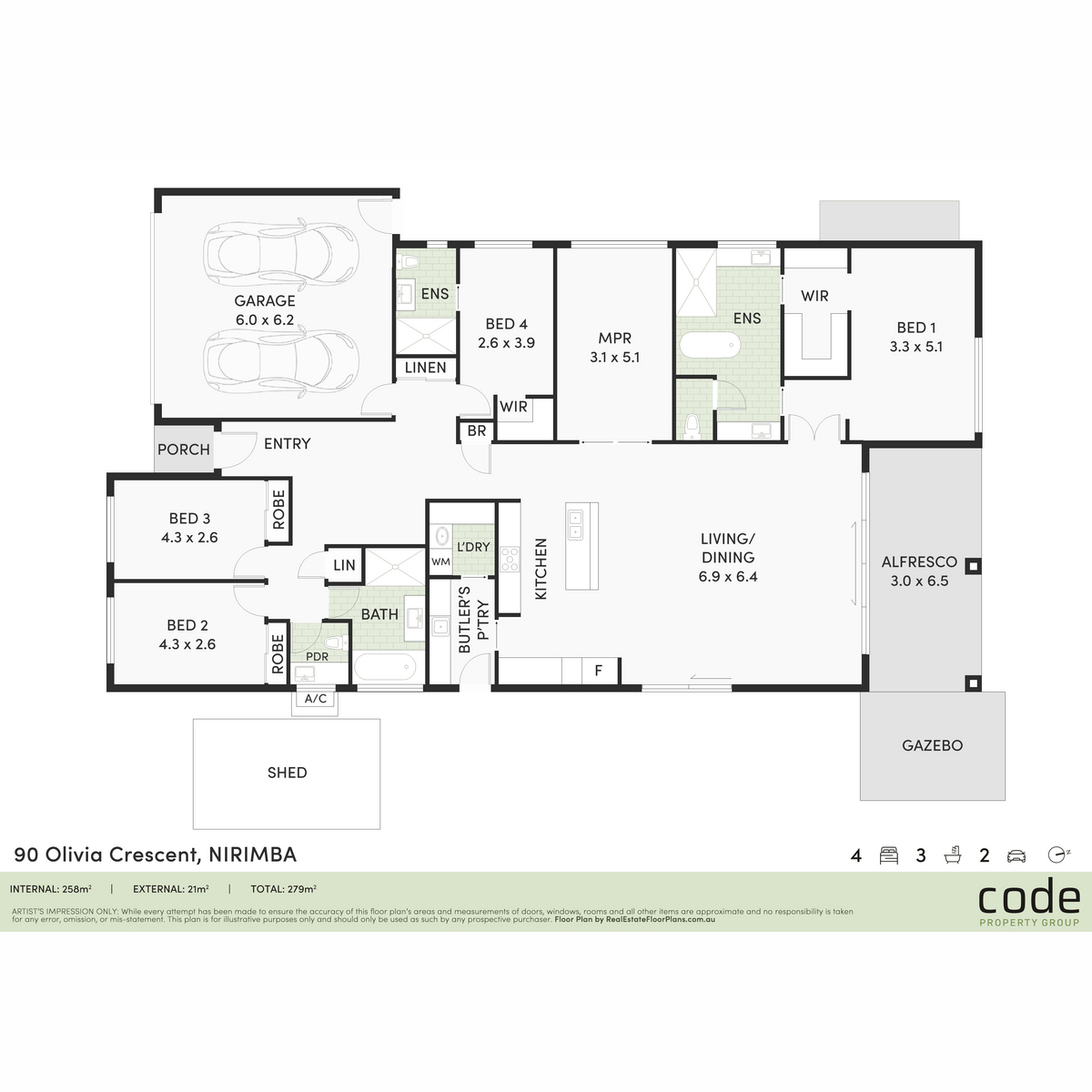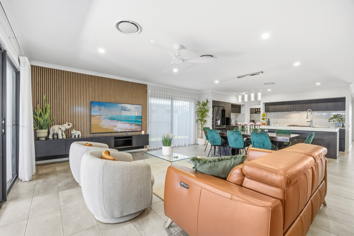 Across approximately 279m2, the home comprises four bedrooms, three bathrooms, study nook, two separate living areas, ultra-stylish kitchen with quality appliances and butler's pantry, north facing covered alfresco entertaining terrace, separate laundry, and double lock up garage.