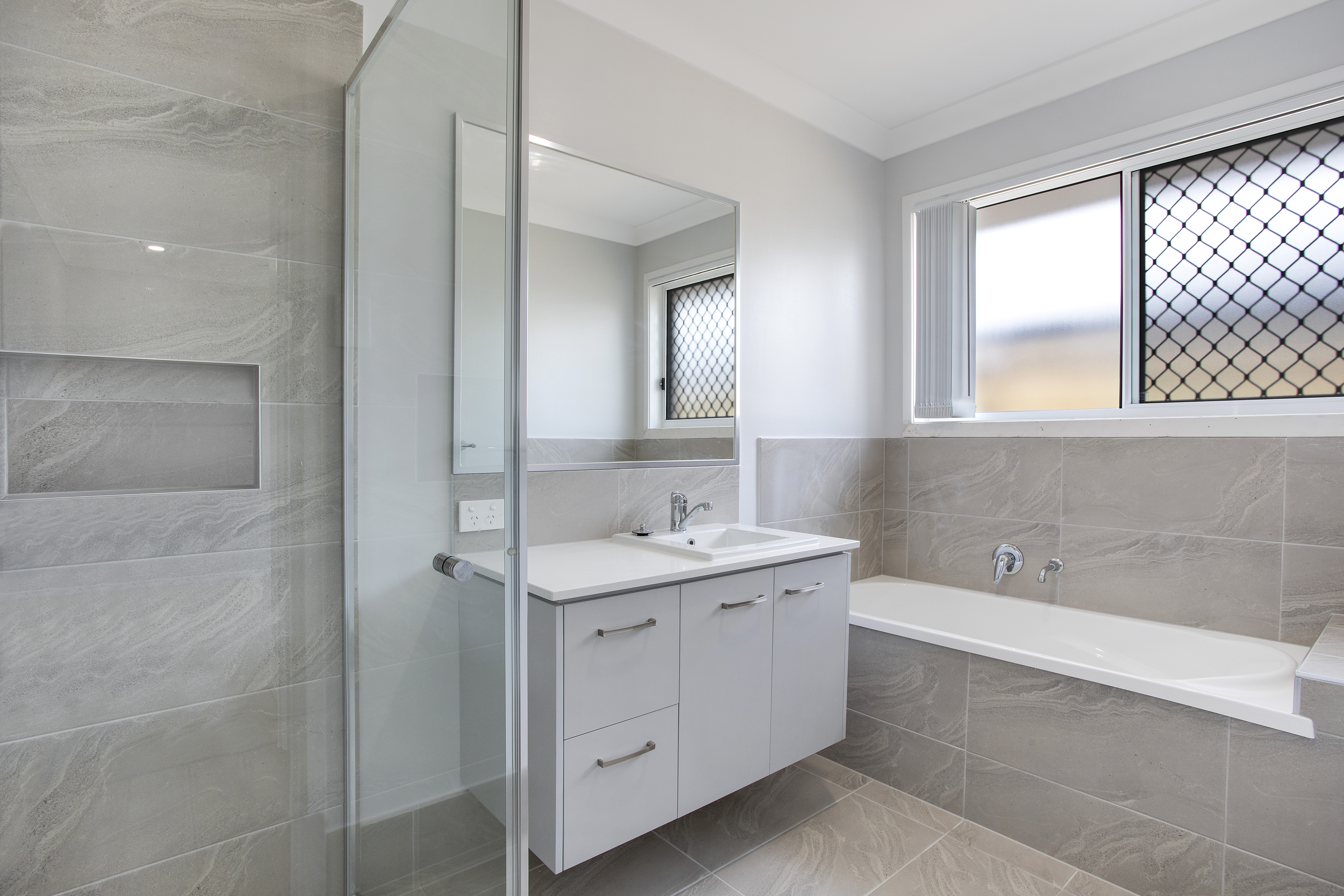The master bedroom (Located at the back) has a generously sized walk in robe and modern ensuite attached. The other three bedrooms have ceiling fans & built in robes.