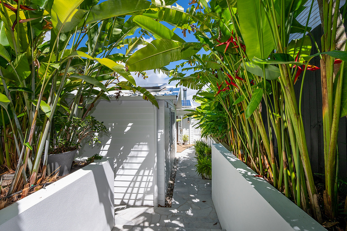 The home's bones are as impressive as its finishes. Concrete block construction, fully insulated and soundproofed, sits beneath a new Colorbond roof, with all-new plumbing, electrical, and irrigation throughout the entire property. Federation-style aluminium windows, fibre cement cladding, and a solid concrete retaining wall complete a build envelope that is properly sealed, energy efficient, and designed to stand for generations. Out front, an acoustic modular wall provides both privacy and quiet, while limestone crazy pave stairs and paths set a tone of understated elegance from the moment you arrive.
