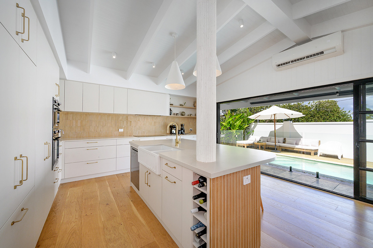 The bathrooms are a highlight: micro cement finishes throughout, with Travertine herringbone tiles, elevating the master ensuite to something truly special. This home is perfect for families and or weekenders looking for something unique and truly special in coastal living.