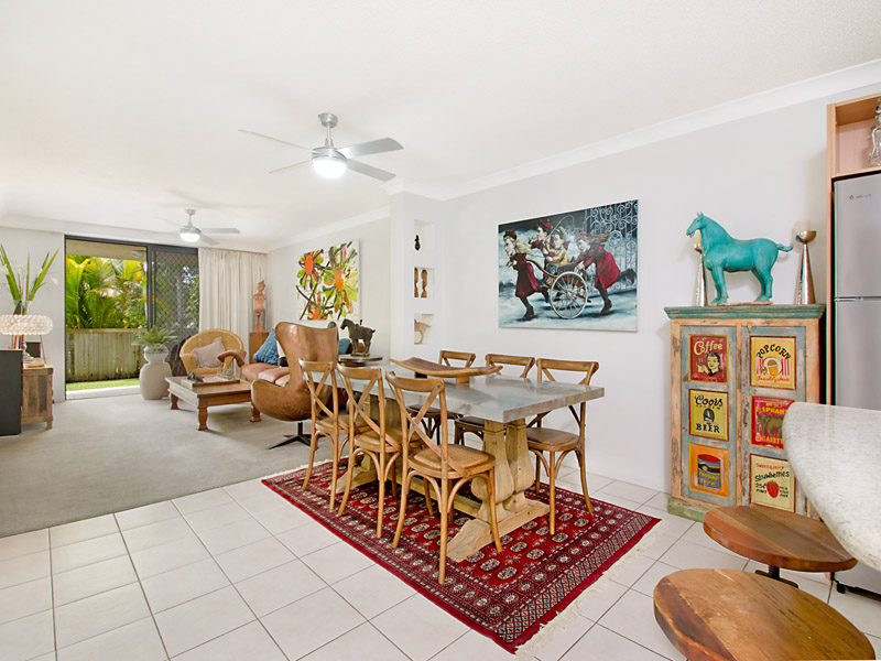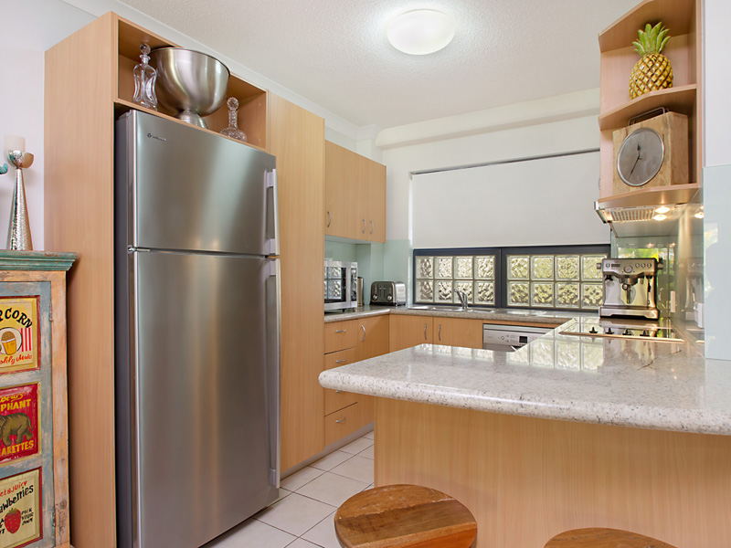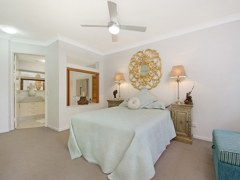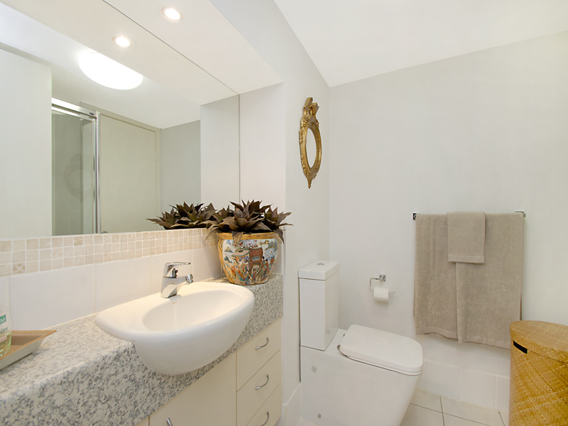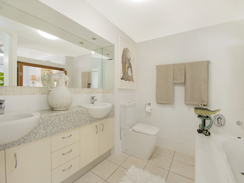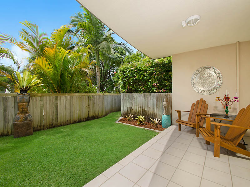 Inside your apartment, it just gets better with two double plus bedrooms, extra-large built-ins and a luxury en-suite off the master with spa, big shower and double vanity. Bathroom fixtures and fittings are of the highest quality and as new. Both the master bedroom and lounge open (separately) to the large north-facing covered patio with views of tropical gardens and low-maintenance private yard.