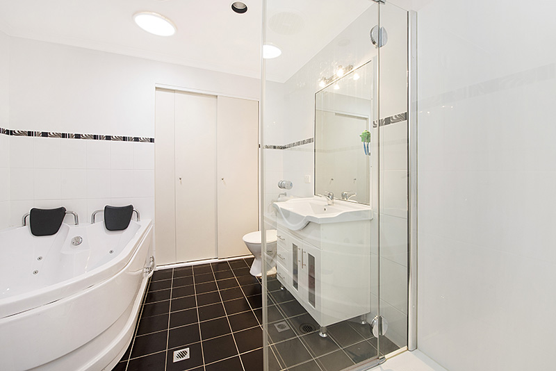 Hardwood polished floors, air-conditioning, spa bath;