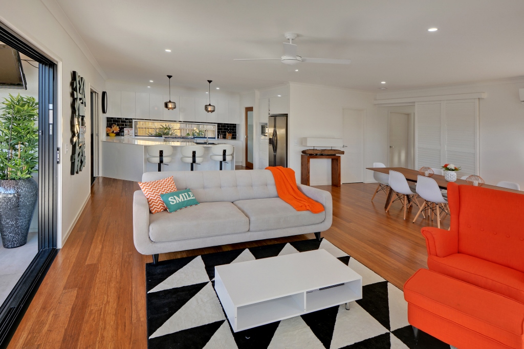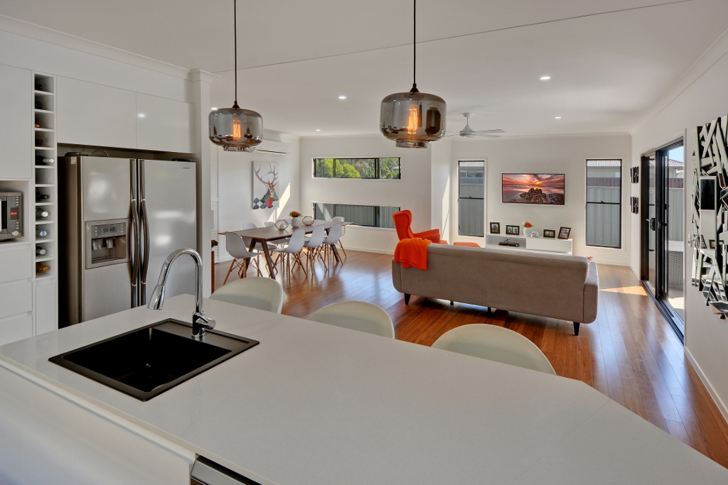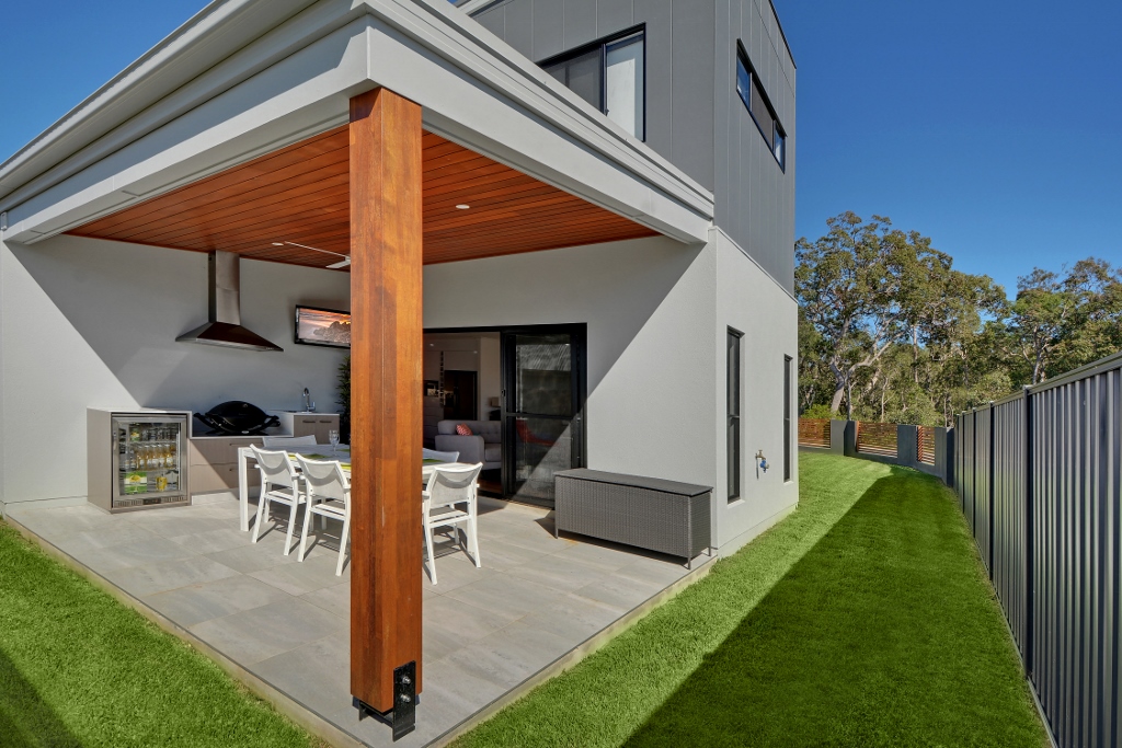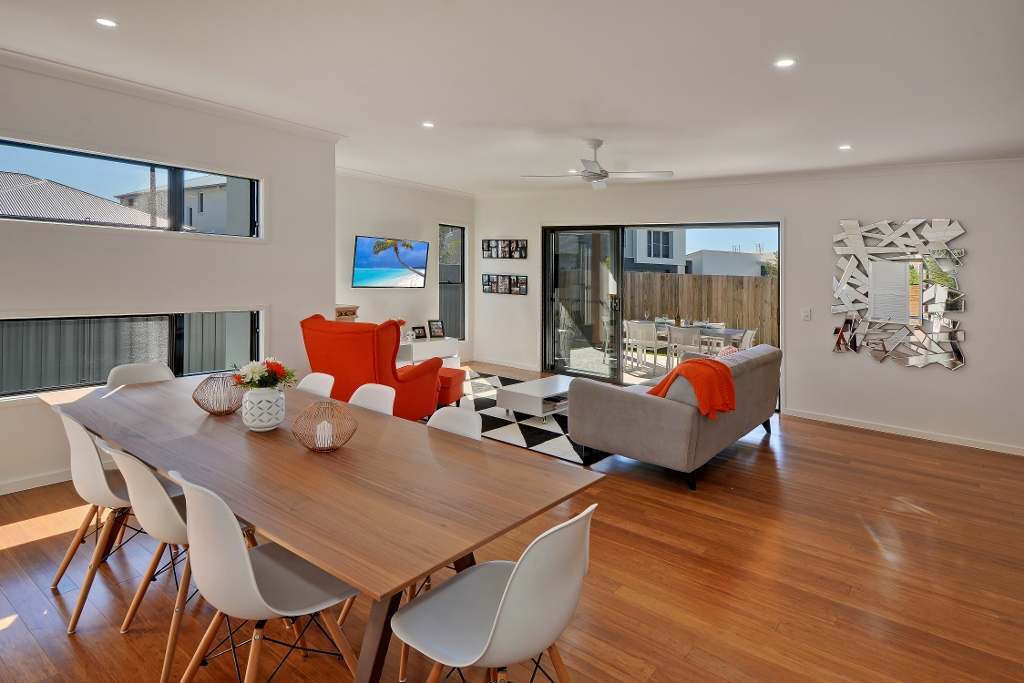 Over two levels the home is complete with four bedrooms, study nook, two bathrooms plus powder room, three separate living areas, well equipped kitchen, alfresco entertaining patio with built-in outdoor kitchen and BBQ, and double lock up garage on a fully fenced easy care block opposite a nature reserve and waterway.