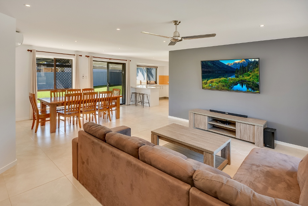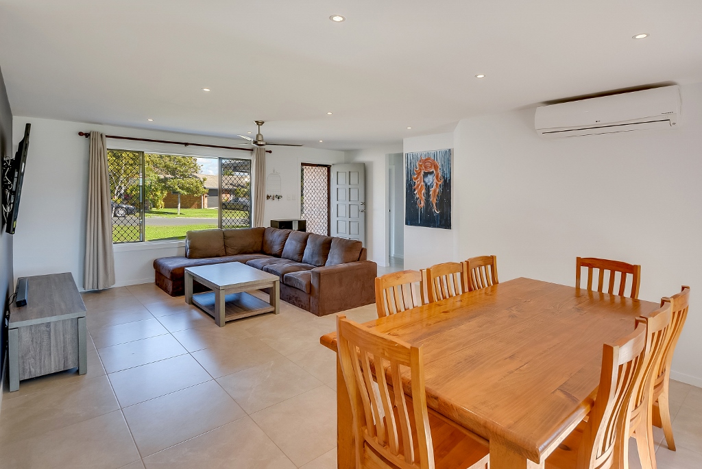 - Spacious tiled open plan living and dining, reverse cycle air-conditioned for comfort in all climates