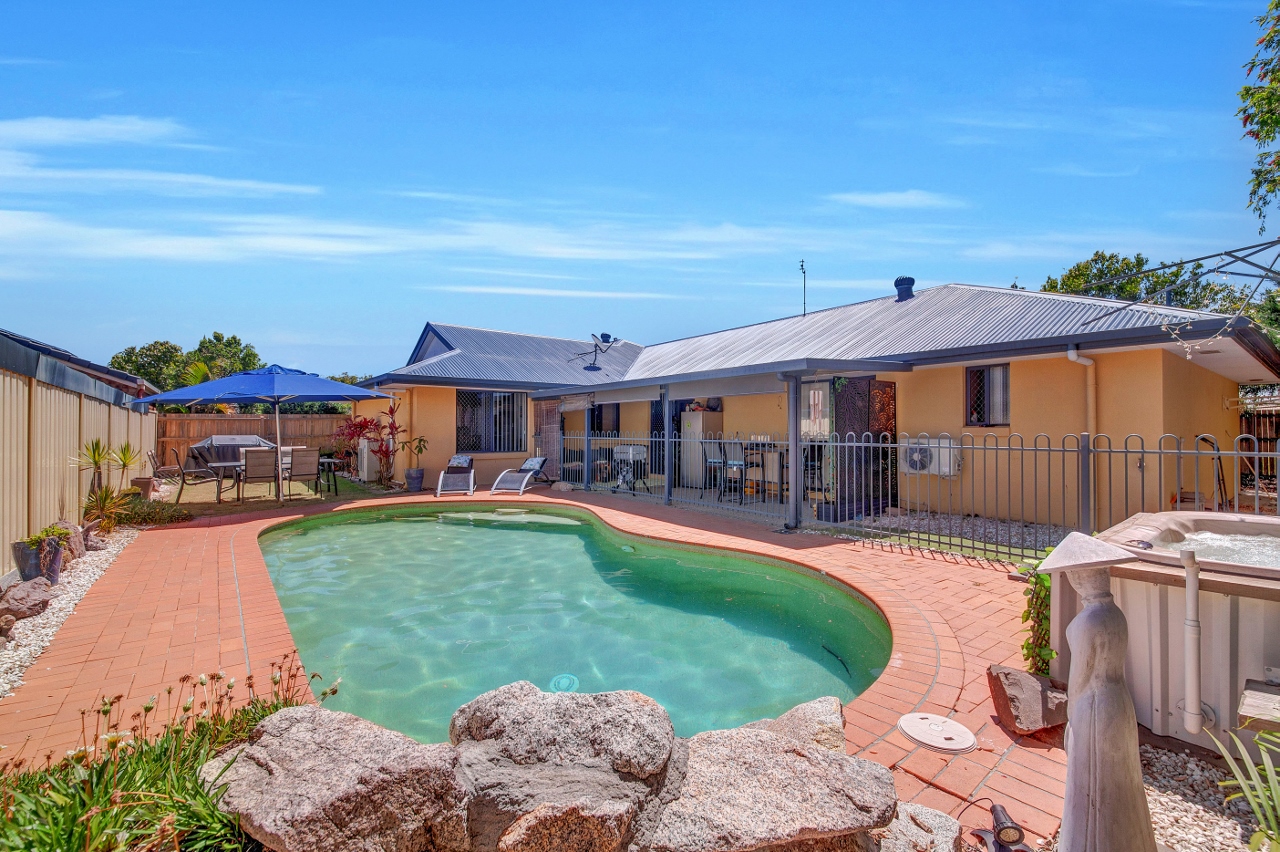 17 Carlisle Street lies on the edge of the estate bordering a reserve and comes complete with 4 bedrooms, 2 bathrooms, a formal open plan lounge and dining room with air conditioning, a separate living room, and the master bedroom has an ensuite and a walk-in-wardrobe. The property has security screens throughout, a stunning inground pool, outdoor entertaining area and even side access.