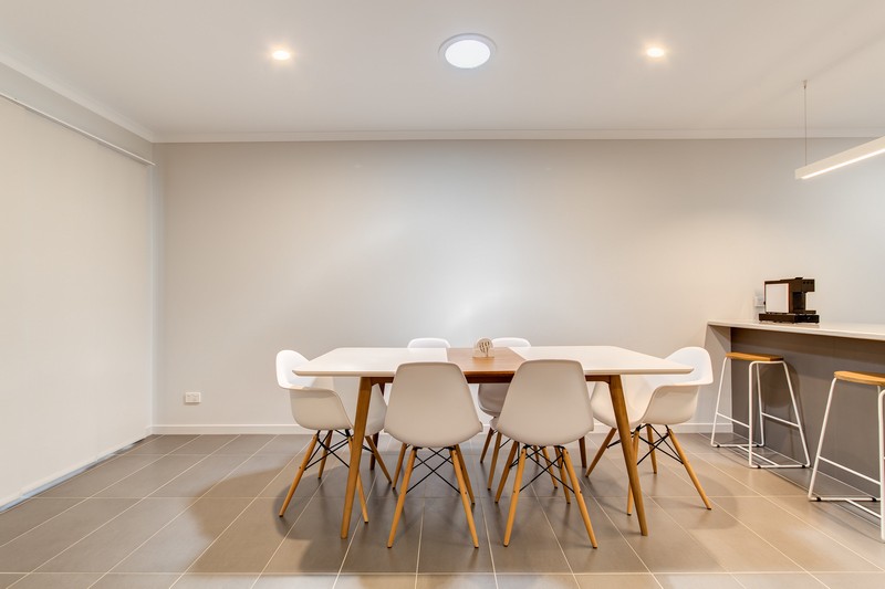 Features include: high-end finishes, ducted air-conditioning, ceiling fans, gas cooktops, stainless steel appliances, security screens, and generous storage. The larger residence, with 193m2 under roof, has a drive through garage to the rear yard, a large separately fenced services area for extra storage, a media room, and an elegant entrance with a stunning Bamboo feature wall.