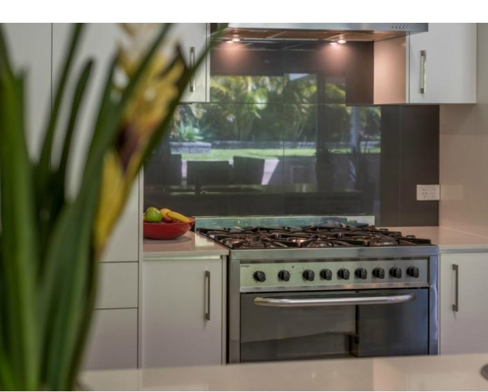 The Kitchen will impress the at home chef with a large gas cook top, dishwasher and electric oven.