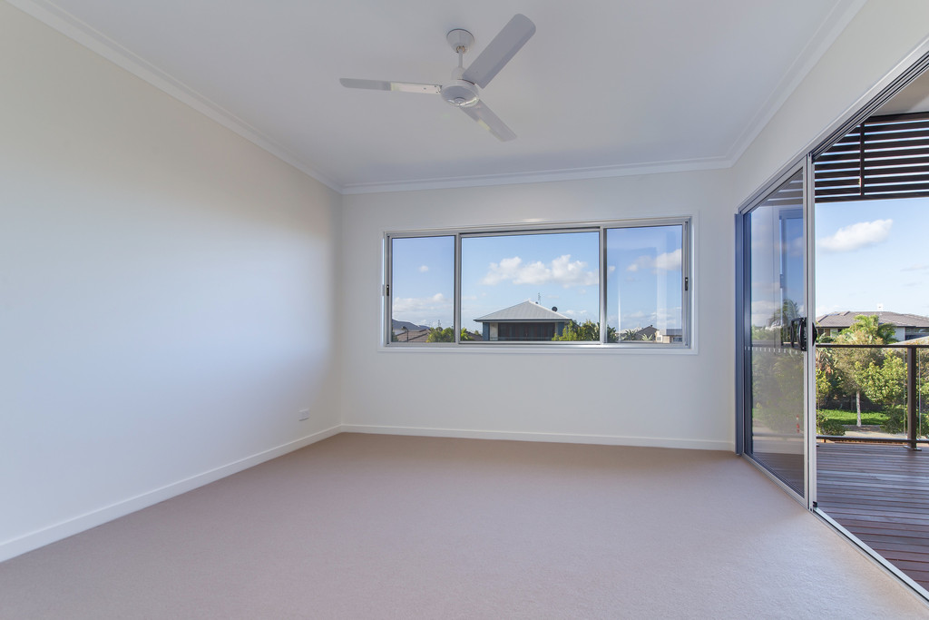 The generously sized master bedroom has a large mirrored built in, Security screens & a deck with distant lake views.