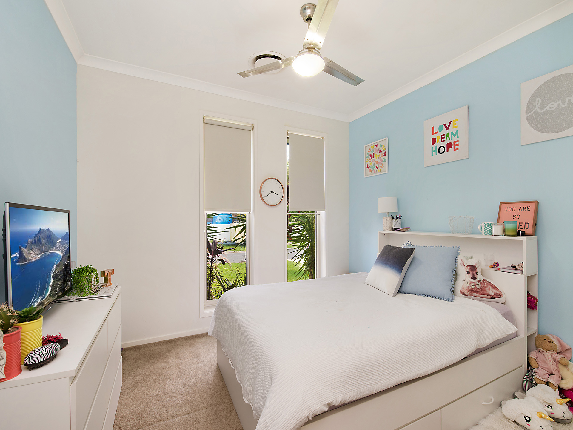 - 3 additional bedrooms, built-in robes and fans, plus study